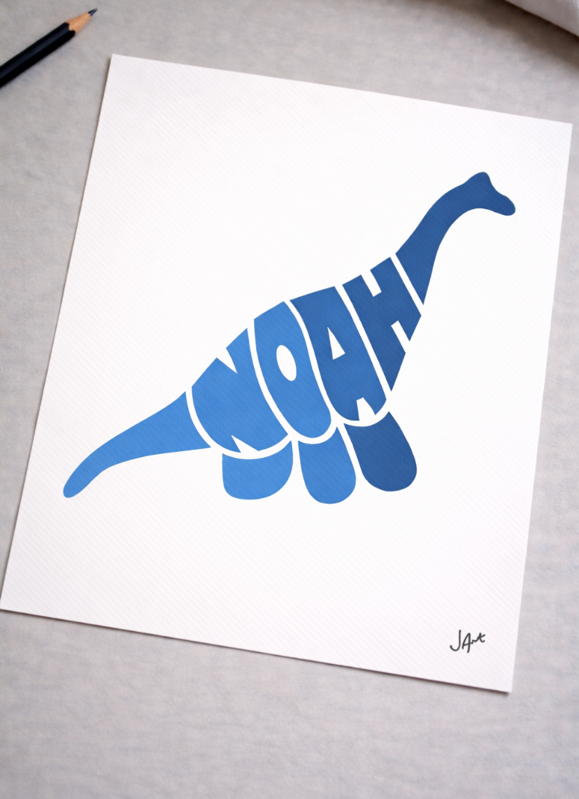 Each Achasaurus design features a signature "analogous grading" a sophisticated transition between five and eleven distinct shades that adds depth and movement to the artwork depending on the number of letters in your child's name. The more letters the greater the gradient.